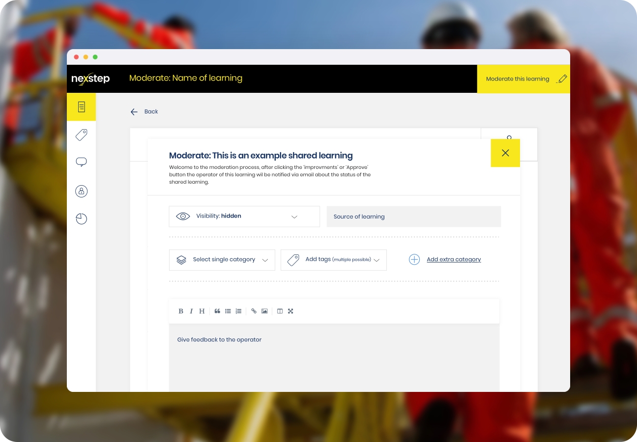 Als onderdeel van onze oplossing hebben we een speciaal digitaal platform ontwikkeld voor de operators. Dit platform faciliteert de geanonimiseerde uitwisseling van kennis tussen verschillende operators, waardoor zij van elkaars ervaringen kunnen leren. Nexstep fungeert als intermediair en moderator om de kwaliteit en relevantie van de gedeelde informatie te waarborgen. Het platform is uitgerust met een geavanceerd moderatiesysteem, waarbij operators de status kunnen volgen van hun bijdragen en feedback kunnen zien op de inzichten van anderen.